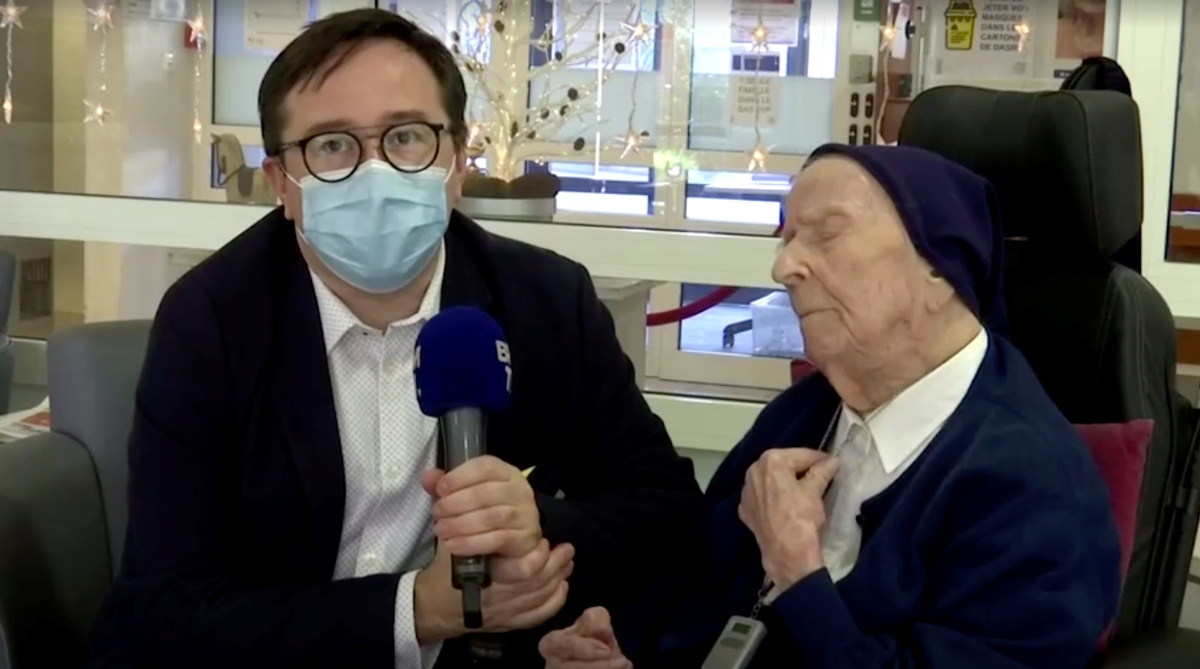 COVID-19 restrictions meant family were unable to visit the blind but spirited nun. President Emmanuel Macron's office were among the callers who wished her well.