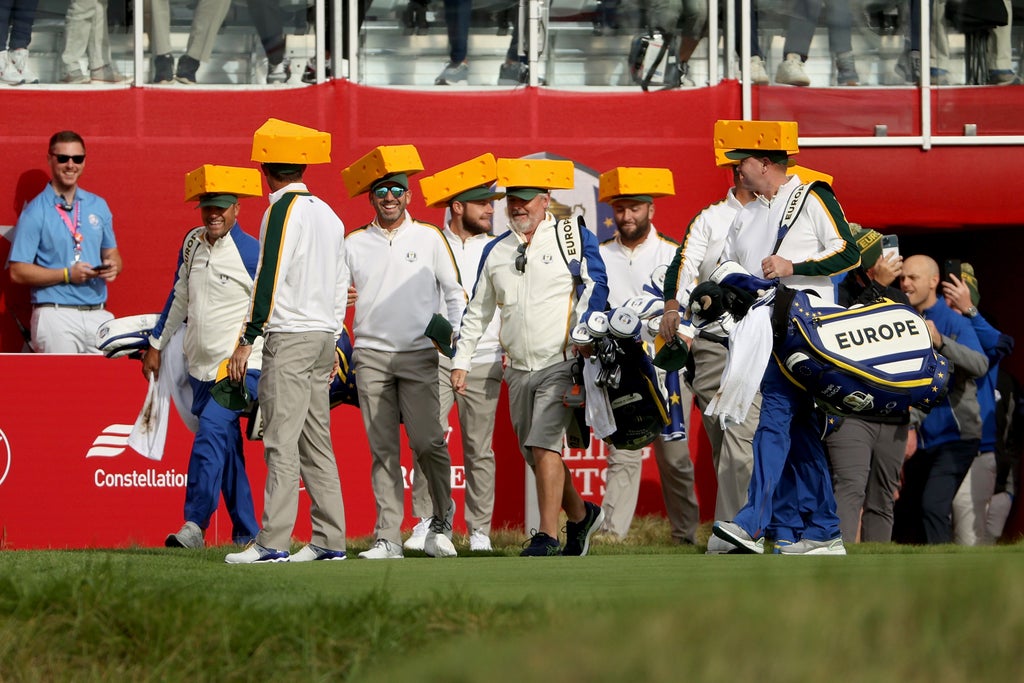 Team Europe are taking the charm route to get US fans on side for the Ryder Cup by wearing Green Bay Packers colours and giving cheesehead souvenirs away.