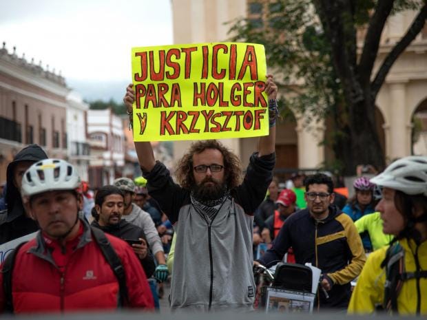 Mr Hagenbusch’s brother Rainer, who flew to Mexico to identify the body, wrote on his Facebook page that both bodies had been mutilated. “The Polish cyclist was decapitated and had a foot missing,” he said.