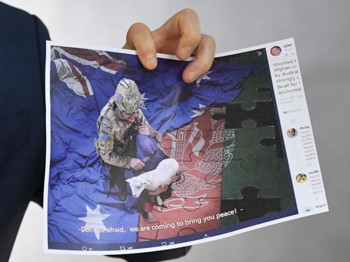 "We consider the deliberate dissemination of a fabricated image via social media accounts affiliated with China's Ministry of Foreign Affairs to be irresponsible, insensitive, and not at all constructive, particularly given the subject in question," an EU spokesman told AAP.