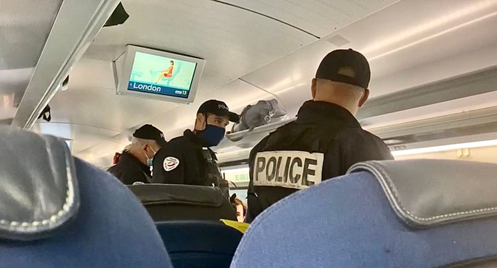 He was then surrounded by at least eight uniformed officers, before being stranded when the train resumed its journey to England.