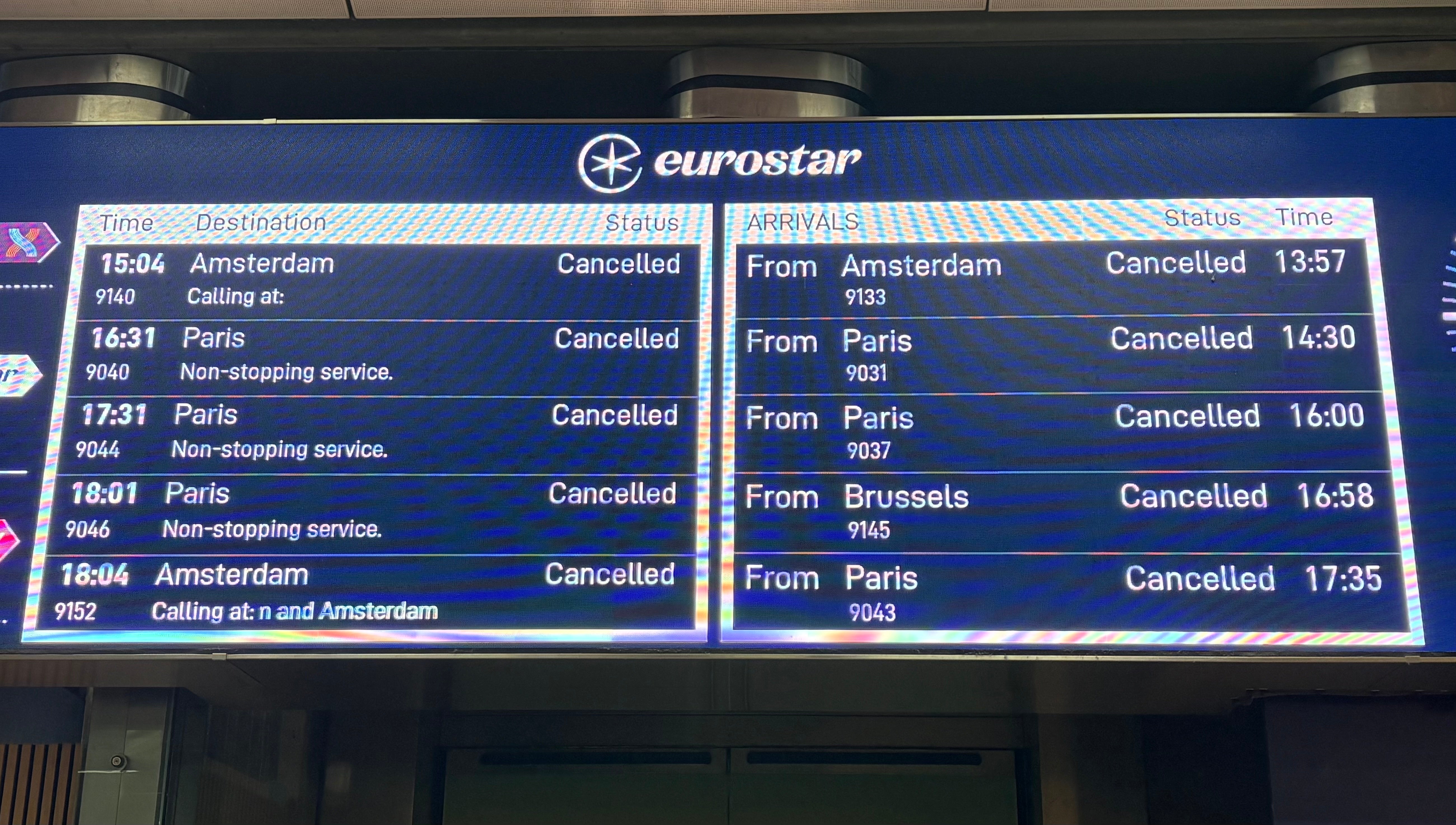 “I can see no visible Eurostar staff – just a list of cancelled trains and a sign reading: ‘Due to a problem in the Eurotunnel, our trains are likely to be subject to severe delays. Sorry for the inconvenience caused’.