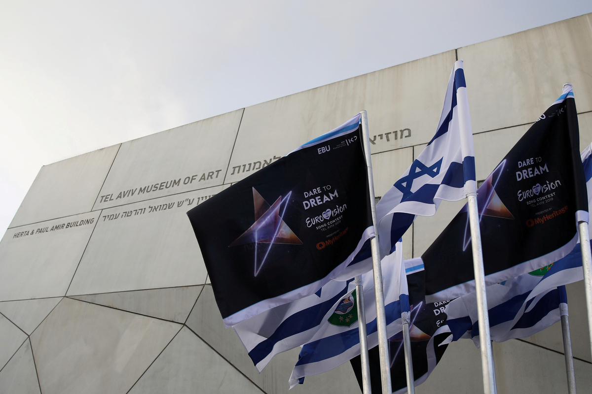 FILE PHOTO: Israeli flags and flags bearing the logo of the 2019 Eurovision song contest flutter outside the Tel Aviv Museum of Art, during the Eurovision Semi-Final allocation draw, in Tel Aviv, Israel January 28, 2019. REUTERS/Corinna Kern/File PhotoFILE PHOTO: Duncan Laurence of the Netherlands reacts after winning the 2019 Eurovision Song Contest in Tel Aviv, Israel May 19, 2019. REUTERS/Ronen Zvulun/File PhotoFILE PHOTO: Fans watch on a big screen the 2019 Eurovision song contest final in the fans zone by the beach in Tel Aviv, Israel, May 19, 2019. REUTERS/ Corinna Kern/File Photo