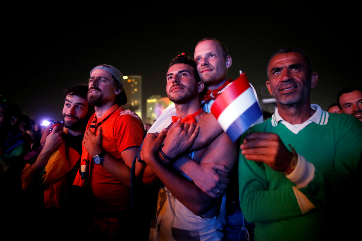 FILE PHOTO: Fans react as they listen to the 2019, Eurovision song contest final in the fans zone by the beach in Tel Aviv, Israel, May 18, 2019 REUTERS/ Corinna Kern/File Photo