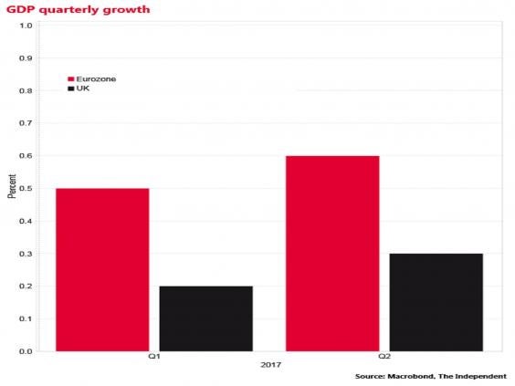 The eurozone’s GDP grew at twice the rate of the UK’s in the second quarter of 2017, official statistics showed on Tuesday.