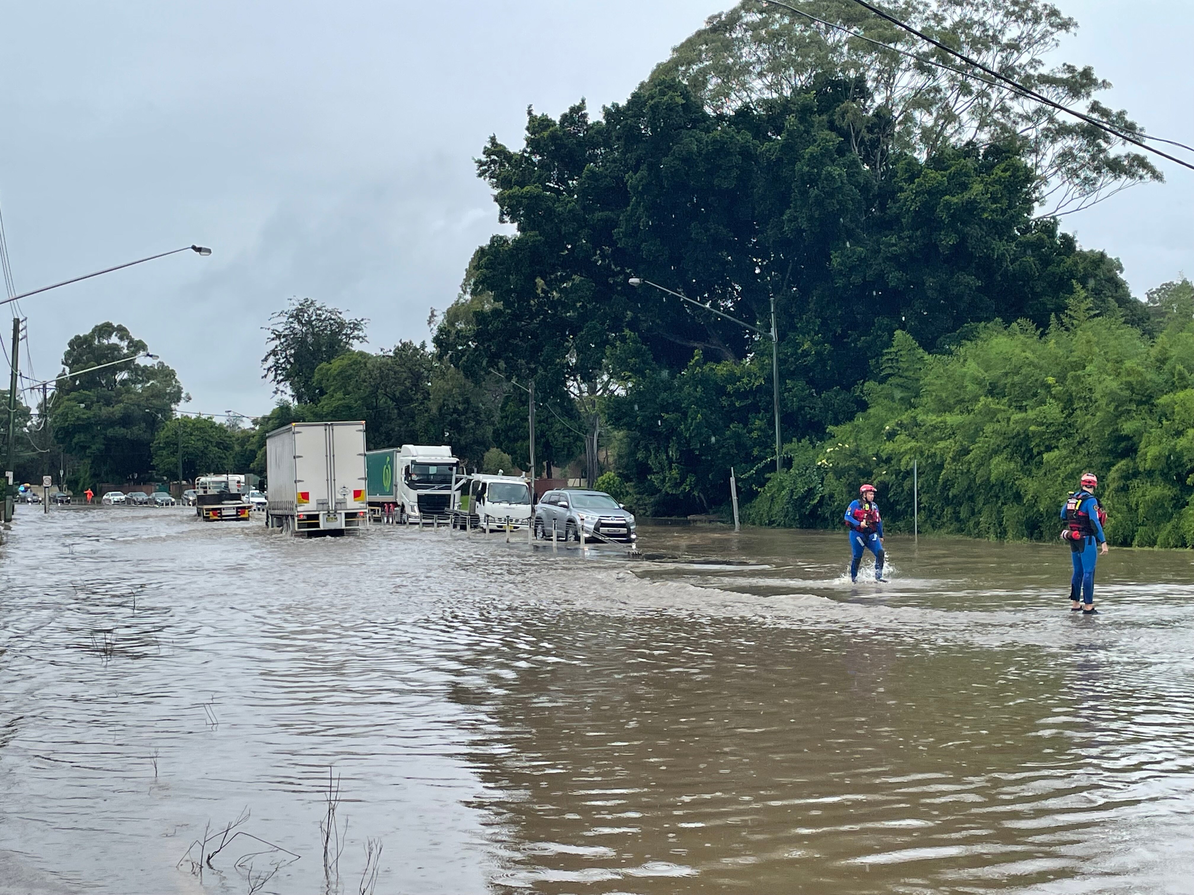 Residents were encouraged to avoid the area, with social media videos showing cars attempting to cross floodwaters in Manly's CBD.