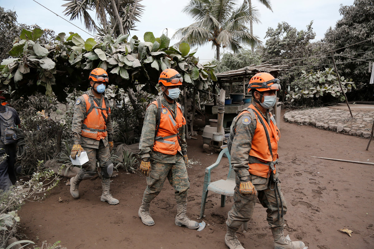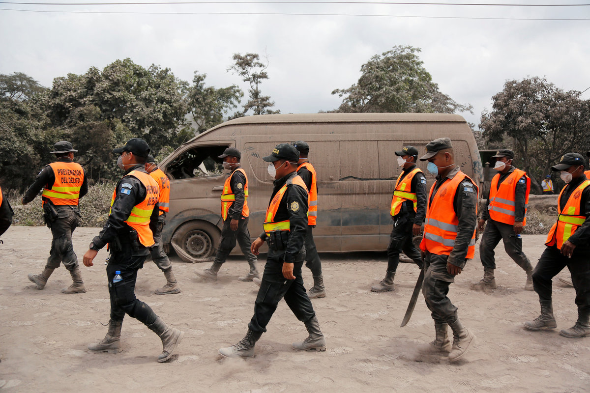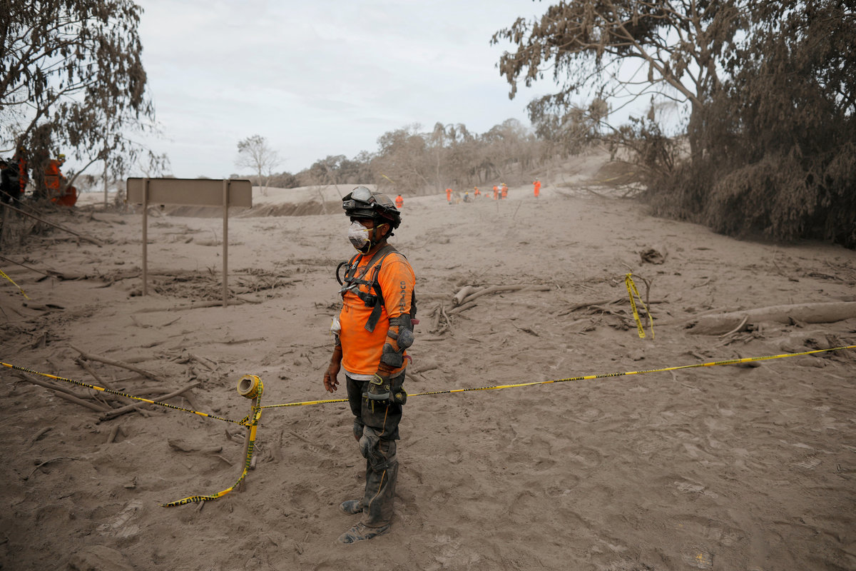 A man carries personal stuff at an area affected by the eruption of the Fuego volcano in the community of San Miguel Los Lotes in Escuintla, Guatemala June 5, 2018. REUTERS/Luis Echeverria TPX IMAGES OF THE DAYA sign on a widow covered with ash is seen at an area affected by the eruption of the Fuego volcano in the community of San Miguel Los Lotes in Escuintla, June 5, 2018. REUTERS/Luis EcheverriaA rescue worker stands on the perimeter of an area affected by the eruption of the Fuego volcano at El Rodeo in Escuintla, Guatemala June 5, 2018. REUTERS/Jose Cabezas TPX IMAGES OF THE DAYA man covers his face as he carries stuff at an area affected by the eruption of the Fuego volcano in the community of San Miguel Los Lotes in Escuintla, Guatemala June 5, 2018. REUTERS/Luis EcheverriaA solider stands guard on a truck near to Fuego volcano, in Alotenango, Guatemala June 5, 2018. REUTERS/Jose CabezasRescue workers remove ash at an area affected by the eruption of the Fuego volcano in the community of San Miguel Los Lotes in Escuintla, Guatemala June 5, 2018. REUTERS/Luis EcheverriaPolicemen inspect at an area affected by the eruption of the Fuego volcano in the community of San Miguel Los Lotes in Escuintla, Guatemala June 5, 2018. REUTERS/Luis EcheverriaA firefighter measures the temperature of the soil at an area affected by the eruption of the Fuego volcano at El Rodeo in Escuintla, June 5, 2018. REUTERS/Jose CabezasSoldiers inspect an area affected by the eruption of the Fuego volcano in the community of San Miguel Los Lotes in Escuintla, Guatemala June 5, 2018. REUTERS/Luis EcheverriaSoldiers inspect an area affected by the eruption of the Fuego volcano in the community of San Miguel Los Lotes in Escuintla, Guatemala June 5, 2018. REUTERS/Luis EcheverriaDisplaced people take a break as they leave an area affected by the eruption of Fuego volcano in Escuintla, Guatemala June 5, 2018. REUTERS/Luis EcheverriaDisplaced people travel on a motorcycle from an area affected by the eruption of Fuego volcano in Escuintla, Guatemala June 5, 2018. REUTERS/Luis EcheverriaMembers of the Guatemala's National Disaster Management Agency (CONRED) prepare to continue the search for bodies at an area affected by the eruption of the Fuego volcano at El Rodeo in Escuintla, Guatemala June 5, 2018. REUTERS/Jose CabezasA soldier walks at an area affected by the eruption of the Fuego volcano in the community of San Miguel Los Lotes in Escuintla, Guatemala June 5, 2018. REUTERS/Luis EcheverriaPolicemen walk along a street at an area affected by the eruption of the Fuego volcano in the community of San Miguel Los Lotes in Escuintla, Guatemala June 5, 2018. REUTERS/Luis Echeverria
