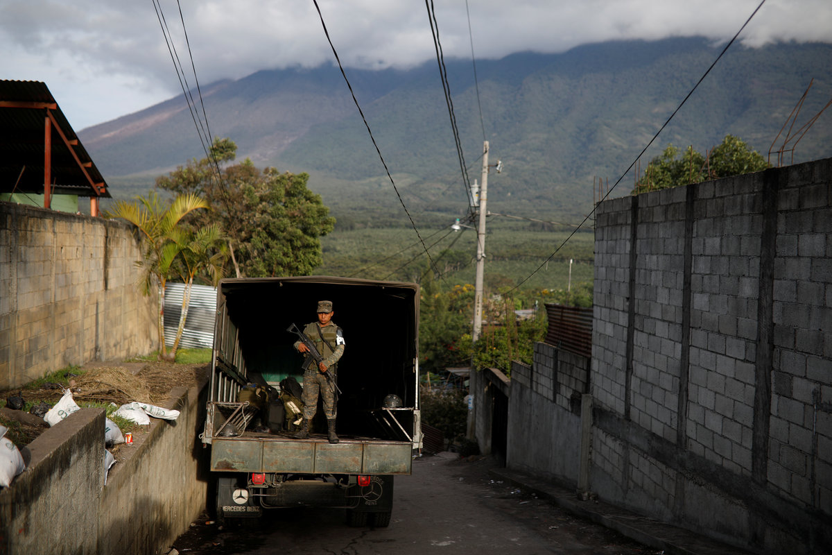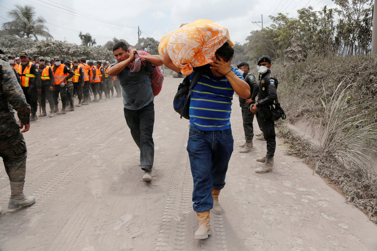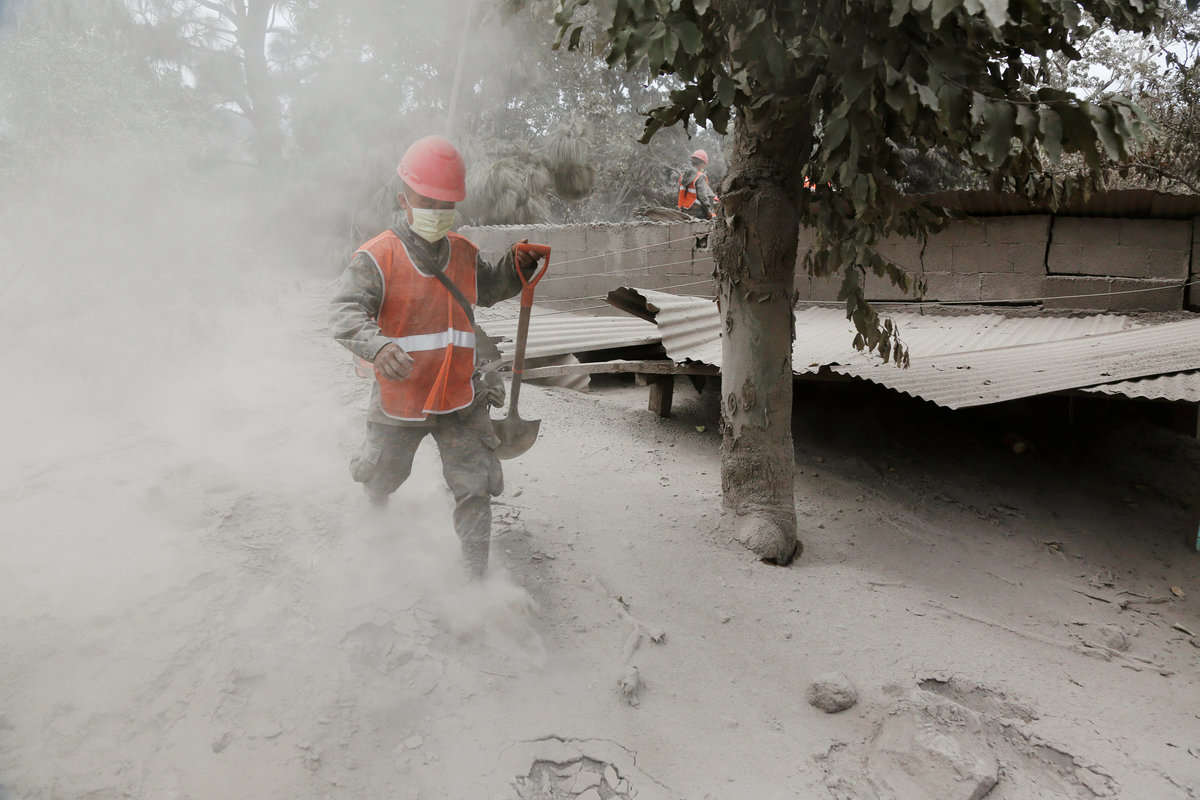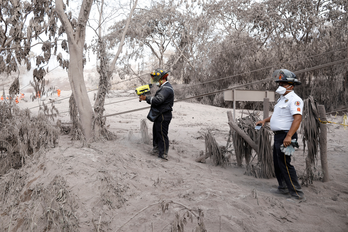 A man carries personal stuff at an area affected by the eruption of the Fuego volcano in the community of San Miguel Los Lotes in Escuintla, Guatemala June 5, 2018. REUTERS/Luis Echeverria TPX IMAGES OF THE DAYA sign on a widow covered with ash is seen at an area affected by the eruption of the Fuego volcano in the community of San Miguel Los Lotes in Escuintla, June 5, 2018. REUTERS/Luis EcheverriaA rescue worker stands on the perimeter of an area affected by the eruption of the Fuego volcano at El Rodeo in Escuintla, Guatemala June 5, 2018. REUTERS/Jose Cabezas TPX IMAGES OF THE DAYA man covers his face as he carries stuff at an area affected by the eruption of the Fuego volcano in the community of San Miguel Los Lotes in Escuintla, Guatemala June 5, 2018. REUTERS/Luis EcheverriaA solider stands guard on a truck near to Fuego volcano, in Alotenango, Guatemala June 5, 2018. REUTERS/Jose CabezasRescue workers remove ash at an area affected by the eruption of the Fuego volcano in the community of San Miguel Los Lotes in Escuintla, Guatemala June 5, 2018. REUTERS/Luis EcheverriaPolicemen inspect at an area affected by the eruption of the Fuego volcano in the community of San Miguel Los Lotes in Escuintla, Guatemala June 5, 2018. REUTERS/Luis EcheverriaA firefighter measures the temperature of the soil at an area affected by the eruption of the Fuego volcano at El Rodeo in Escuintla, June 5, 2018. REUTERS/Jose CabezasSoldiers inspect an area affected by the eruption of the Fuego volcano in the community of San Miguel Los Lotes in Escuintla, Guatemala June 5, 2018. REUTERS/Luis EcheverriaSoldiers inspect an area affected by the eruption of the Fuego volcano in the community of San Miguel Los Lotes in Escuintla, Guatemala June 5, 2018. REUTERS/Luis EcheverriaDisplaced people take a break as they leave an area affected by the eruption of Fuego volcano in Escuintla, Guatemala June 5, 2018. REUTERS/Luis EcheverriaDisplaced people travel on a motorcycle from an area affected by the eruption of Fuego volcano in Escuintla, Guatemala June 5, 2018. REUTERS/Luis EcheverriaMembers of the Guatemala's National Disaster Management Agency (CONRED) prepare to continue the search for bodies at an area affected by the eruption of the Fuego volcano at El Rodeo in Escuintla, Guatemala June 5, 2018. REUTERS/Jose CabezasA soldier walks at an area affected by the eruption of the Fuego volcano in the community of San Miguel Los Lotes in Escuintla, Guatemala June 5, 2018. REUTERS/Luis EcheverriaPolicemen walk along a street at an area affected by the eruption of the Fuego volcano in the community of San Miguel Los Lotes in Escuintla, Guatemala June 5, 2018. REUTERS/Luis Echeverria