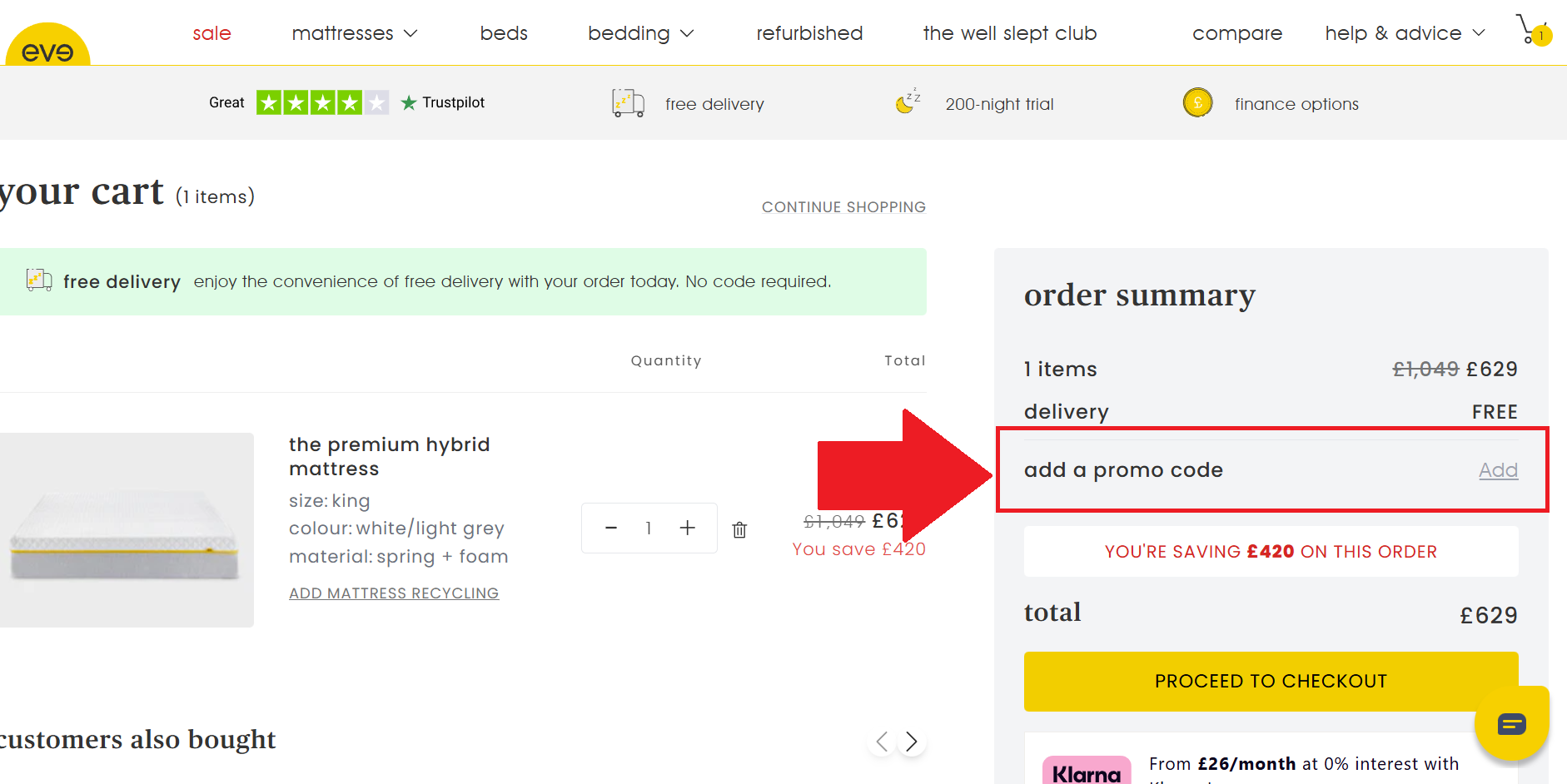 - Copy the code and head to the Eve Sleep website to start shopping.
