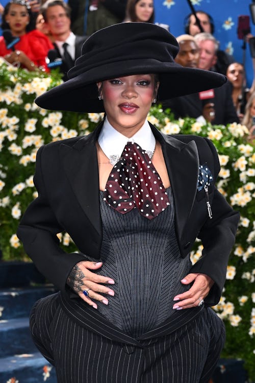 - Rihanna revealed her third pregnancy in a Marc Jacobs pinstripe outfit, becoming a focal point of the evening.