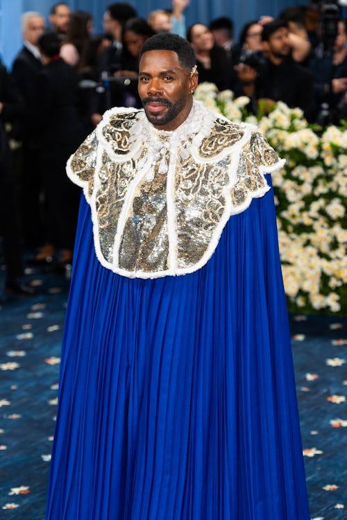 - Colman Domingo wore a deep blue Valentino cape, paying tribute to fashion legend André Leon Talley.