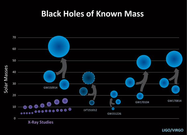 As the lowest-mass of LIGO's black hole finds, GW170608's lightweight pair is in the same class as black holes that astronomers have found indirectly via X-rays and other high-energy radiation.
