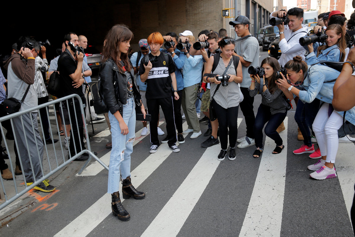 Photographers take photos of a model at New York Fashion Week in Manhattan, New York, U.S., September 7, 2017. REUTERS/Andrew Kelly