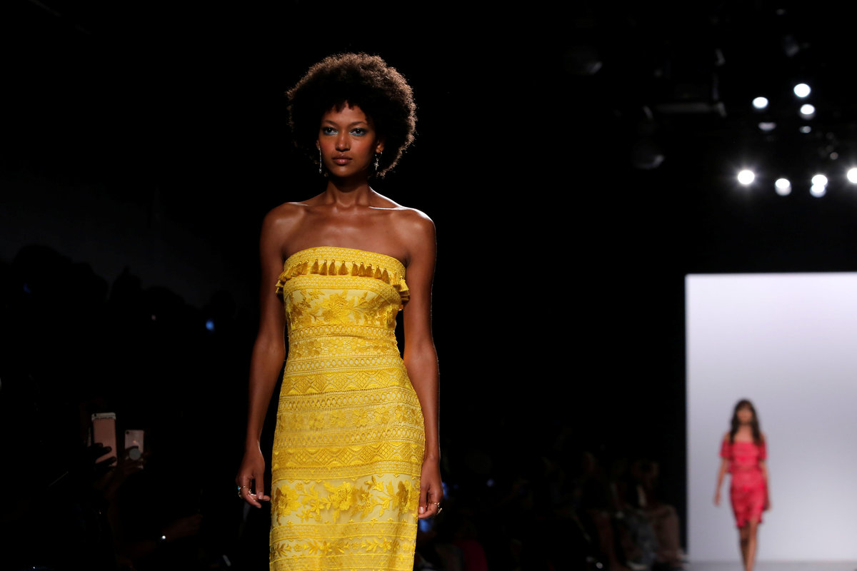 A model presents a creation from the Tadashi Shoji Spring/Summer 2018 collection at New York Fashion Week in Manhattan, New York, U.S., September 7, 2017. REUTERS/Andrew KellyDesigner Tadashi Shoji acknowledges attendees after presenting his Spring/Summer 2018 collection at New York Fashion Week in Manhattan, New York, U.S., September 7, 2017. REUTERS/Andrew KellyA model walks the runway during rehearsals for the Tadashi Shoji Spring/Summer 2018 collection presentation at New York Fashion Week in Manhattan, New York, U.S., September 7, 2017. REUTERS/Andrew KellyA model is prepared backstage before the Tadashi Shoji Spring/Summer 2018 collection presentation at New York Fashion Week in Manhattan, New York, U.S., September 7, 2017. REUTERS/Andrew KellyModels await instructions before rehearsals for the Tadashi Shoji Spring/Summer 2018 collection presentation at New York Fashion Week in Manhattan, New York, U.S., September 7, 2017. REUTERS/Andrew KellyA model is prepared backstage before the Tadashi Shoji Spring/Summer 2018 collection presentation at New York Fashion Week in Manhattan, New York, U.S., September 7, 2017. REUTERS/Andrew KellyA model walks the runway during rehearsals for the Tadashi Shoji Spring/Summer 2018 collection presentation at New York Fashion Week in Manhattan, New York, U.S., September 7, 2017. REUTERS/Andrew KellyA makeup artist prepares a model backstage before the Tadashi Shoji Spring/Summer 2018 collection presentation at New York Fashion Week in Manhattan, New York, U.S., September 7, 2017. REUTERS/Andrew Kelly