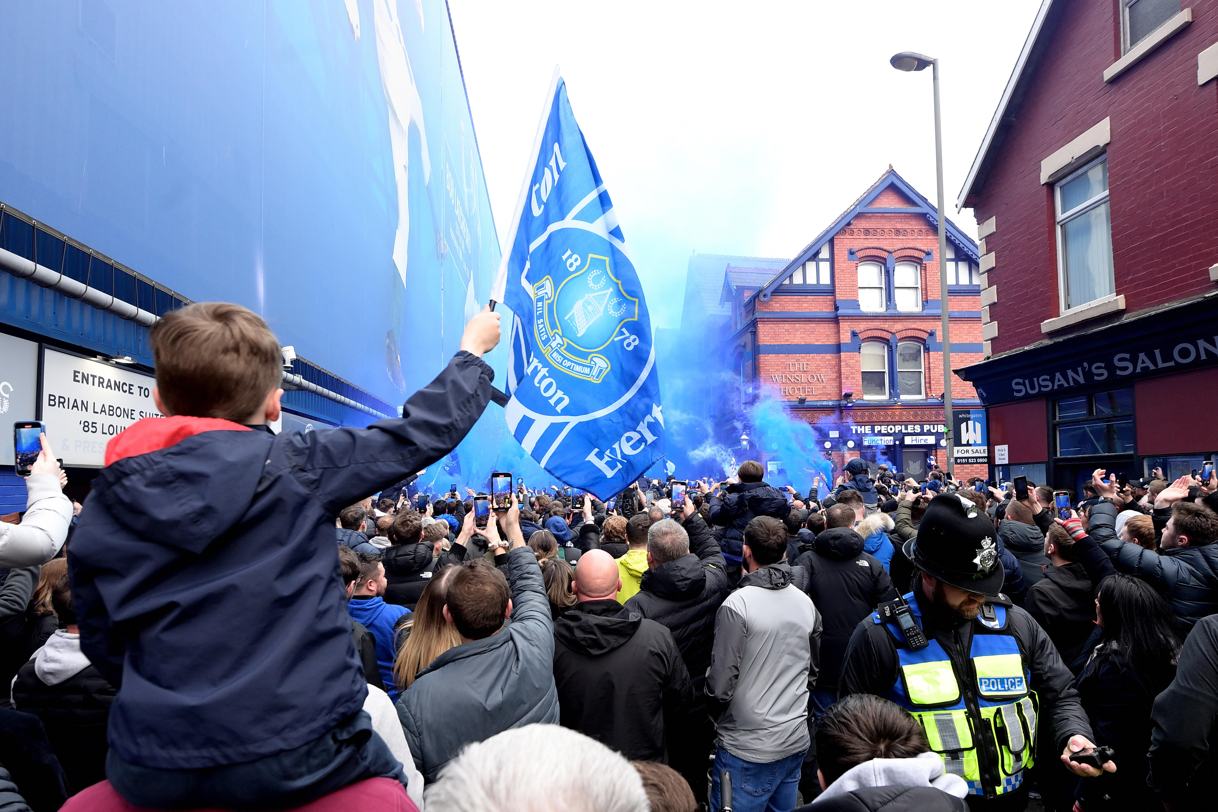 While that was unfolding, a club statement was released explaining that members of the Everton board — including chairman Bill Kenwright, chief executive Denise Barrett-Baxendale and club legend Graeme Sharp — had been instructed not to attend the game by security advisors due to a "real and creditable threat to their safety".