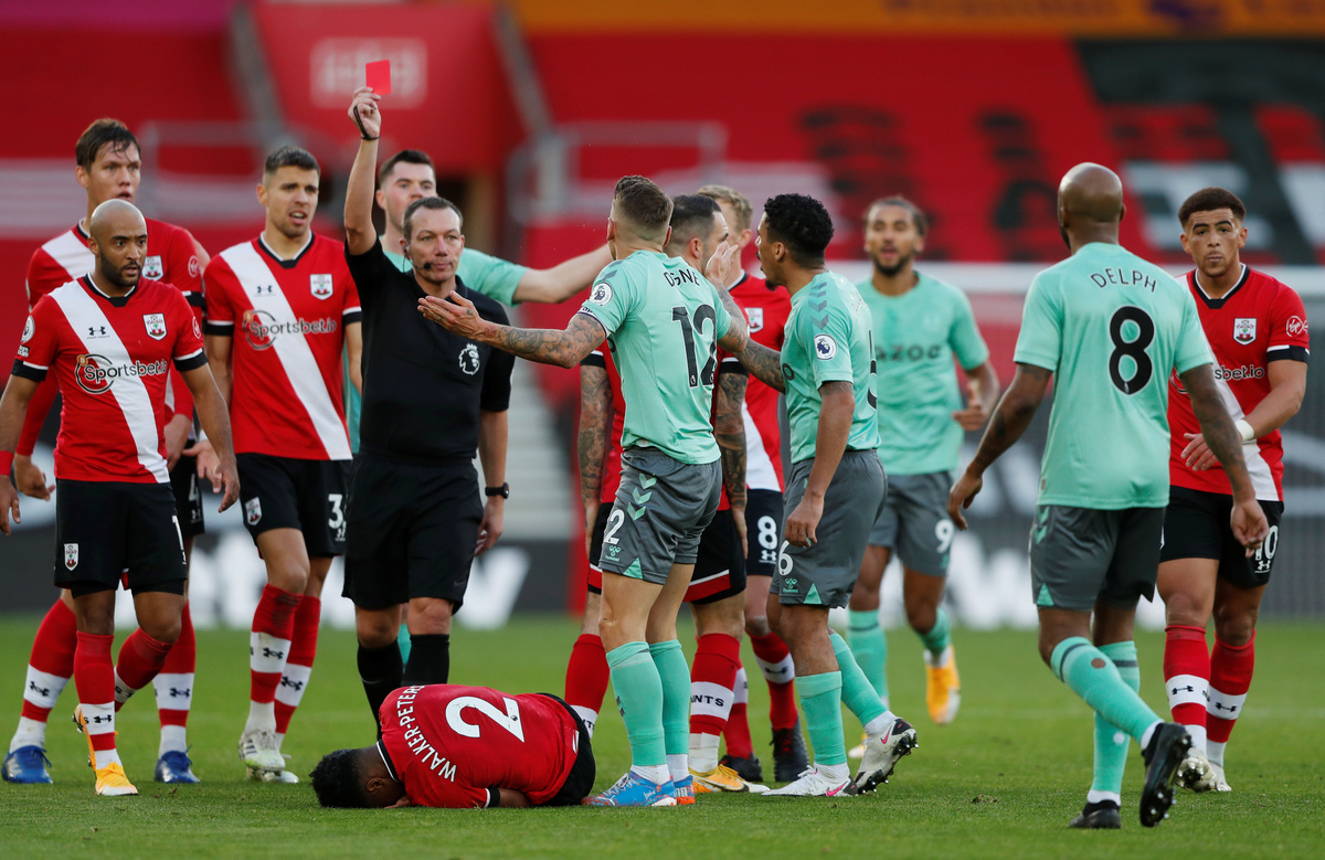 Digne was shown a red card in Everton's 2-0 defeat at Southampton last weekend for a stamp on Saints defender Kyle Walker-Peters in the 72nd minute.