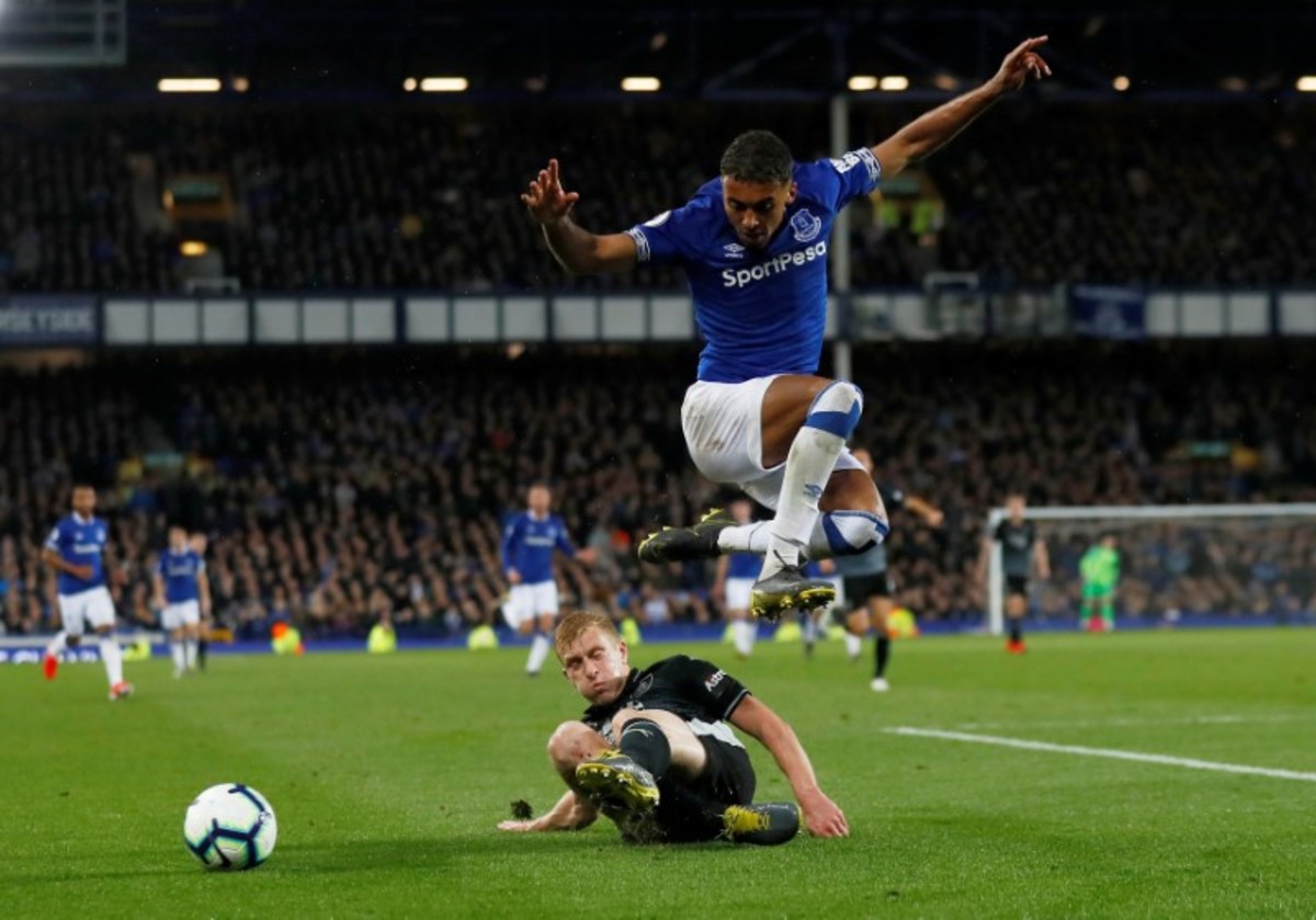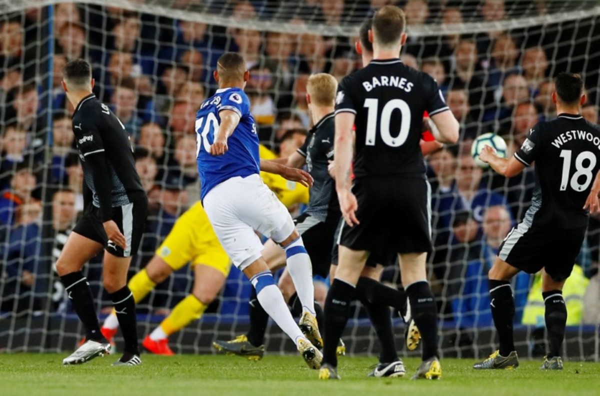 Soccer Football - Premier League - Everton v Burnley - Goodison Park, Liverpool, Britain - May 3, 2019 Everton's Richarlison shoots before Burnley's Ben Mee scores Everton's first with an own goal Action Images via Reuters/Jason Cairnduff