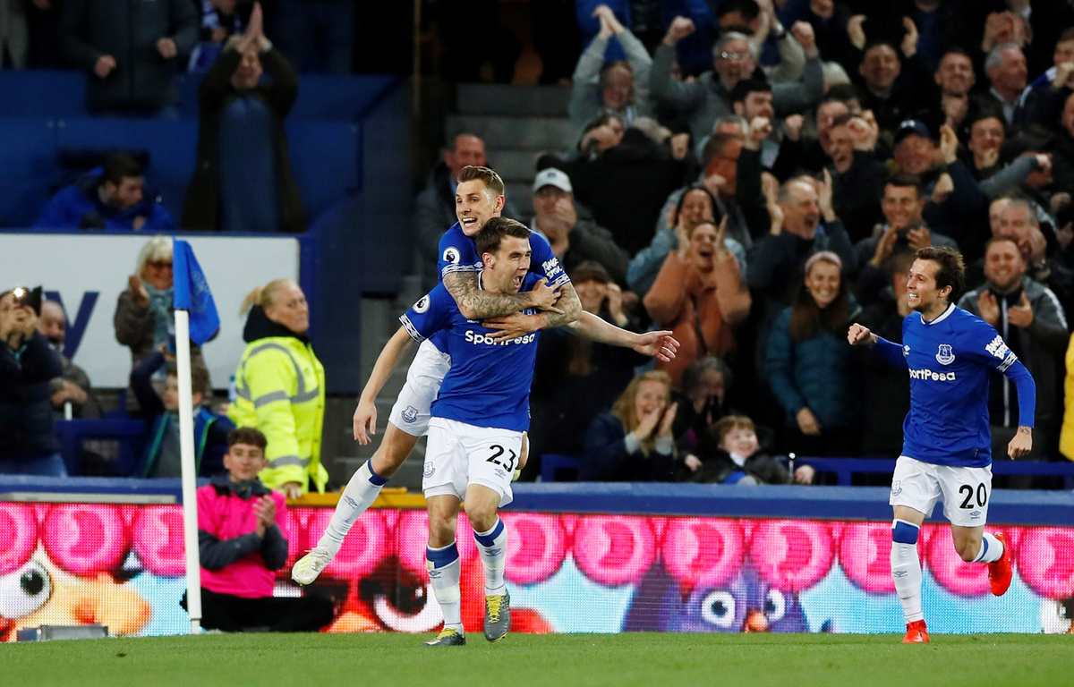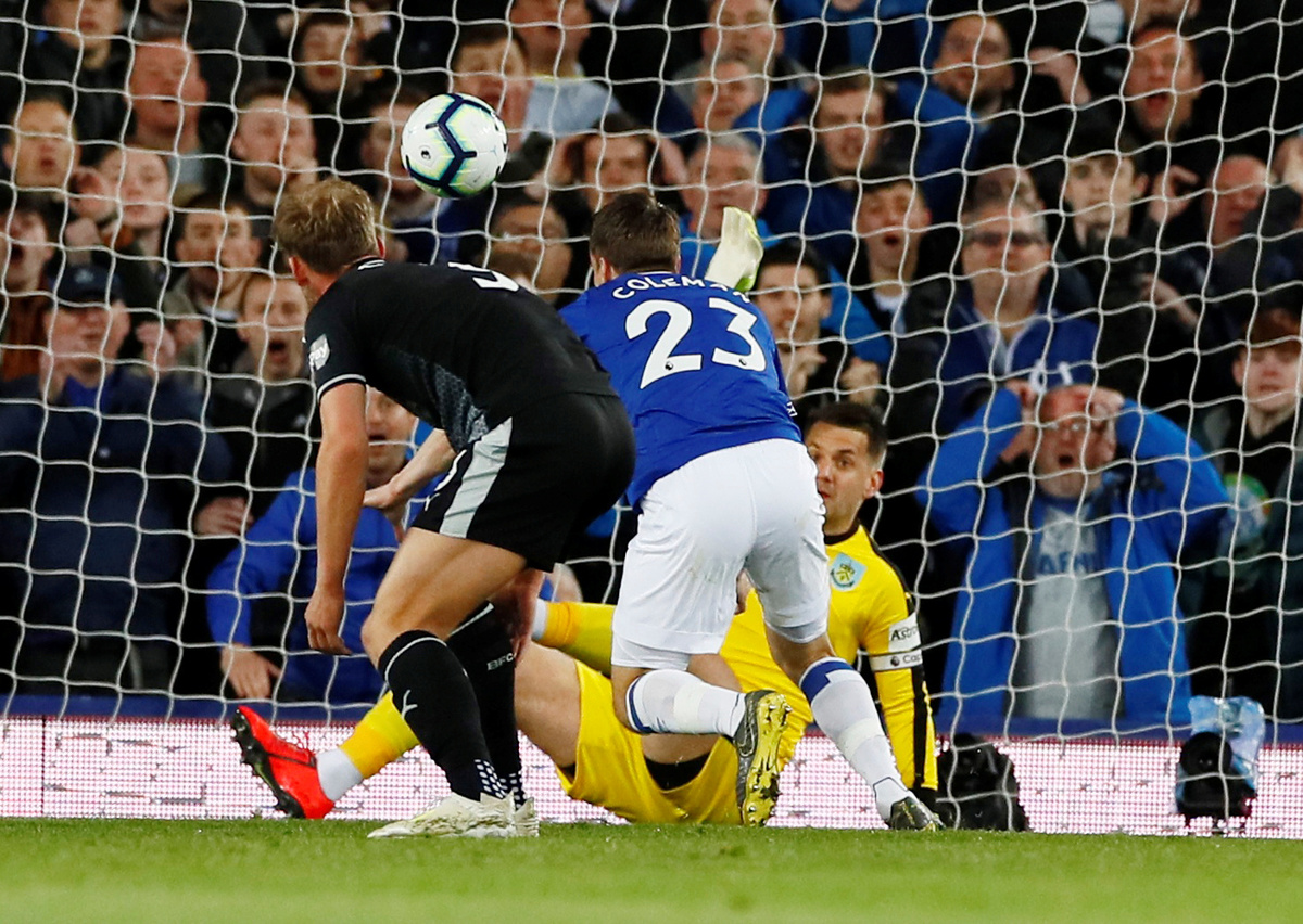 Soccer Football - Premier League - Everton v Burnley - Goodison Park, Liverpool, Britain - May 3, 2019 Everton's Seamus Coleman scores their second goal Action Images via Reuters/Jason Cairnduff