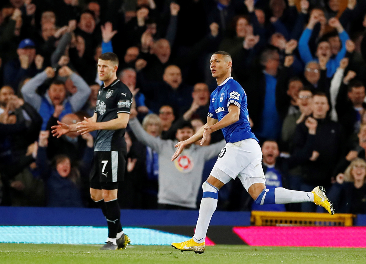 Soccer Football - Premier League - Everton v Burnley - Goodison Park, Liverpool, Britain - May 3, 2019 Everton's Richarlison celebrates their first goal Action Images via Reuters/Jason Cairnduff
