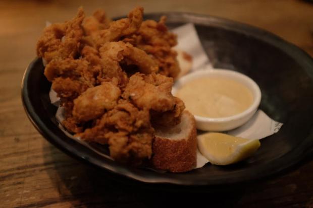 The Crispy squid (B360) is made Sicilian style. The squid is soaked in milk for 24 hours and then dusted with herbs and spices. It is left to dry overnight in the fridge and is dusted again before frying. What this process does is make the batter on the calamari darker and crisper, which also comes from the paprika and togarashi. This is the best tasting calamari I've had in a long while. If you know what Southern fried chicken tastes like, this is it. It is the drying out process that helps form the crust for that extra layer of crispiness.