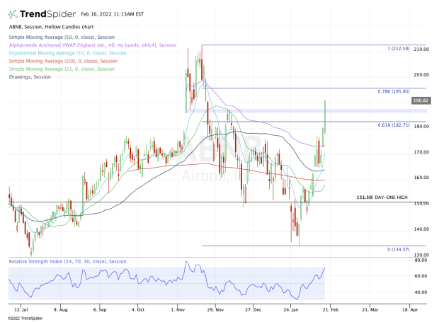 On Jan. 28, Airbnb stock undercut the prior low from January at $135.76, bottomed, then reversed higher.