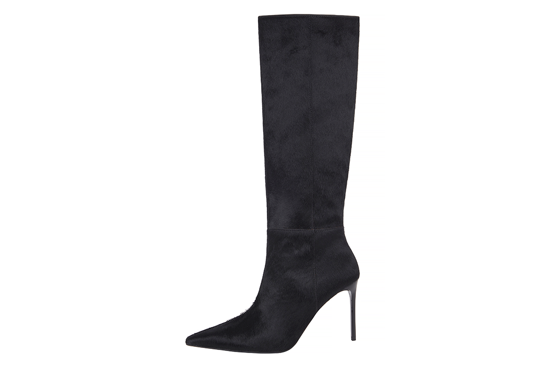 A good pair of black knee high boots can prop up your winter wardrobe for years to come. This stiletto style has been given the 16Arlington treatment with a textured, hair-on-leather finish. Whether poking out of wide leg trousers or teamed with a mini skirt, the boots instantly add impact.