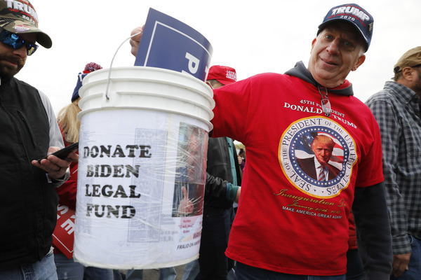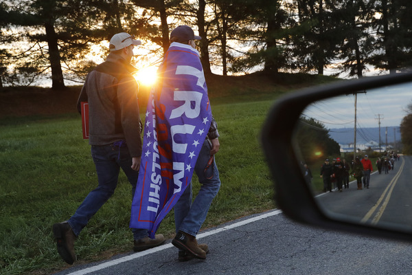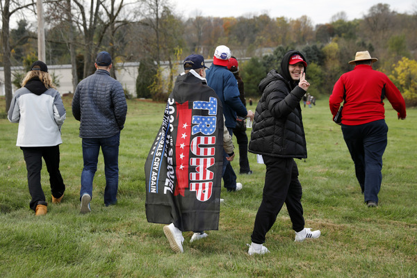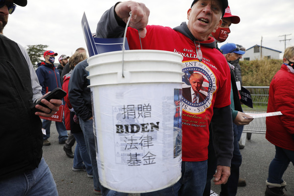 Toward the end of the speech Harris was briefly interrupted by a man who appeared in front of the stage, yelling "Trump 2020" and holding a sign that said "Looters for Biden."