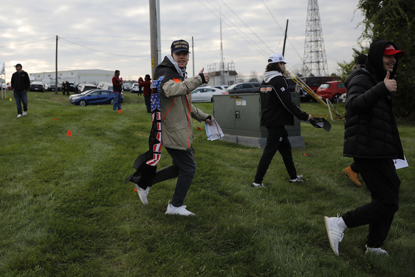 She solicited a loud roar of honks from the hundred or so cars at the drive-in rally, which was not open to the general public. Campaign supporters receive invites, but unlike Trump rallies, people cannot show up.