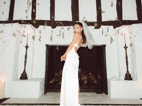 In a series of photos from the special day posted on Instagram on Wednesday, Grande finally gave fans a look at her wedding dress; a custom Vera Wang gown inspired by Audrey Hepburn’s character in Funny Face.