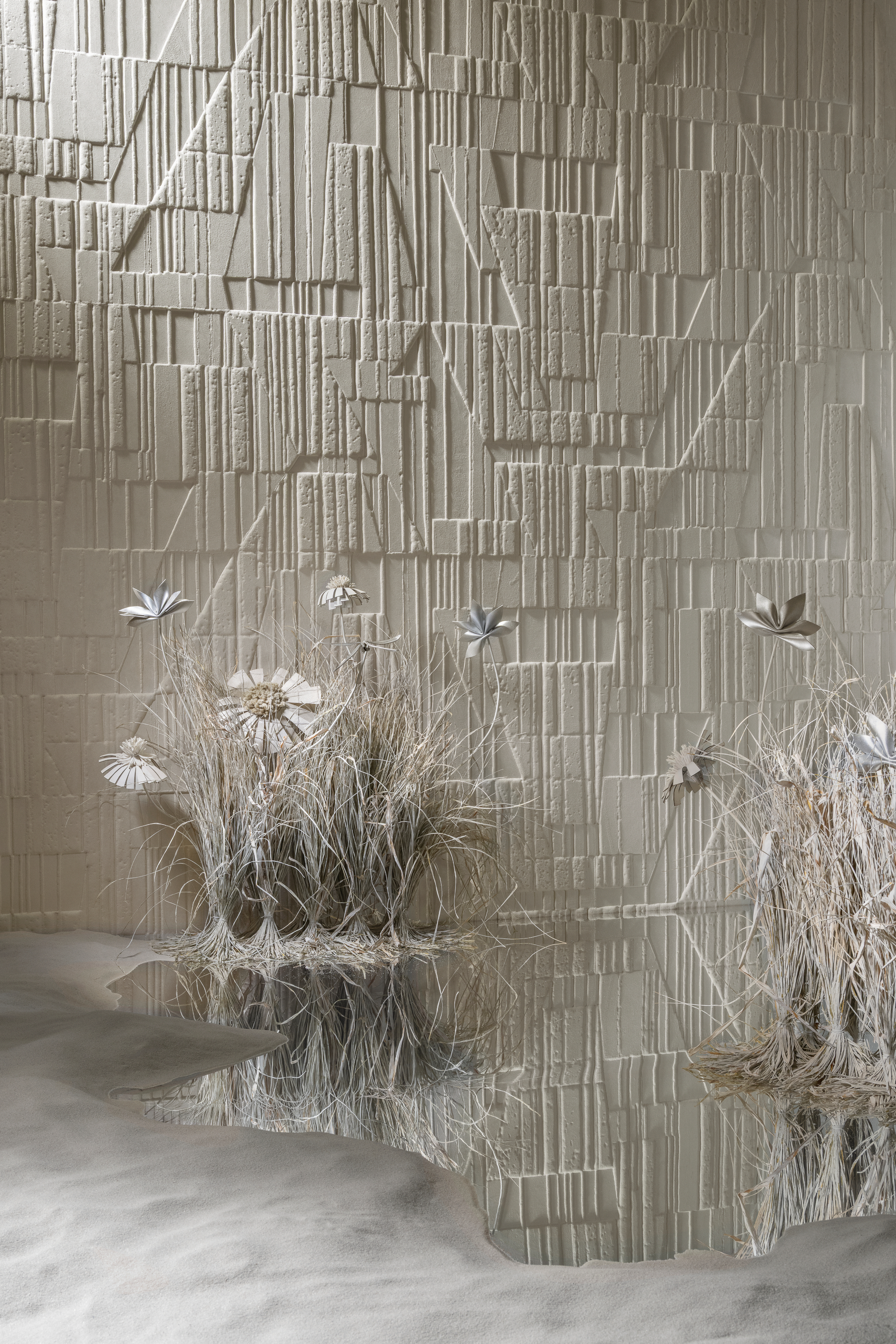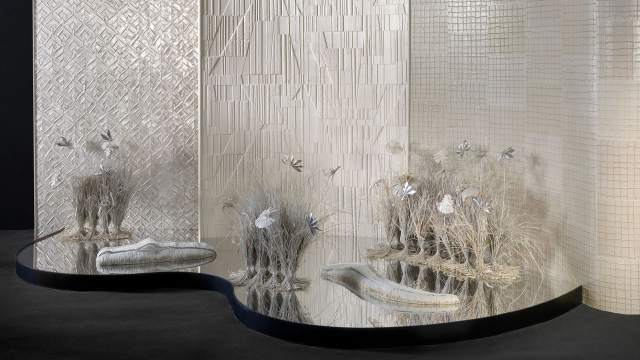 The brand worked with artist Gabriela de Sagarminaga on the installation, all in monochrome, which translates imagined scenes from Memphis into life-sized contemporary artworks made from raffia, cork, shells and woven grasses. “It’s at once old and new, celebrating craftsmanship but with an almost futuristic finish — one of the most interesting things I’ve seen this week,” says our editor Hugh Metcalf.