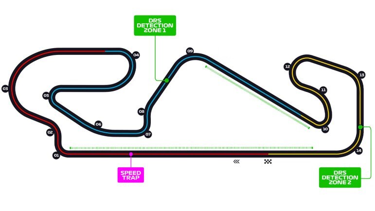 Turn 1, at the end of the long straights, and turn 10 at the end of the circuit's other straight are the best overtaking opportunities.