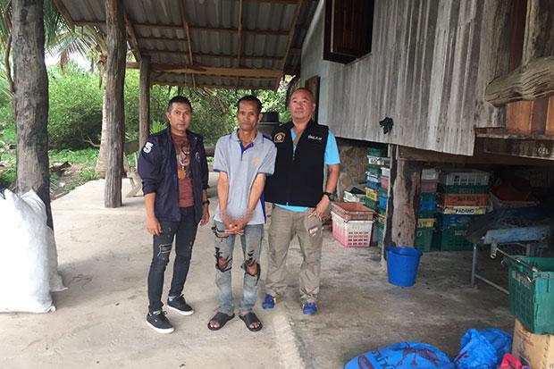 The suspect was wanted on an arrest warrant issued by the Kanchanaburi provincial court for raping a girl aged not more than 15, depriving the girl of parental care and trespassing a house at night.