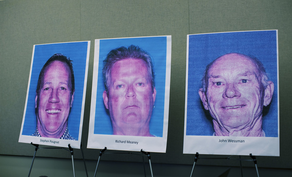 Former Mayor Steve Pougnet, 53, and developers Richard Meaney, 51, and John Wessman, 78, were charged with a combined 30 felony counts of corruption, including paying and accepting bribes, conflict of interest, perjury and conspiracy to commit bribery. Pougnet served as mayor for eight years before announcing in 2015 that he would not seek re-election.