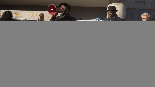 A crowd started gathering outside Superior Court in Hartford by about 8:30 a.m. "All eyes are watching (the hate crime decision)," said Hartford pastor Steven Camp, who waited outside court.