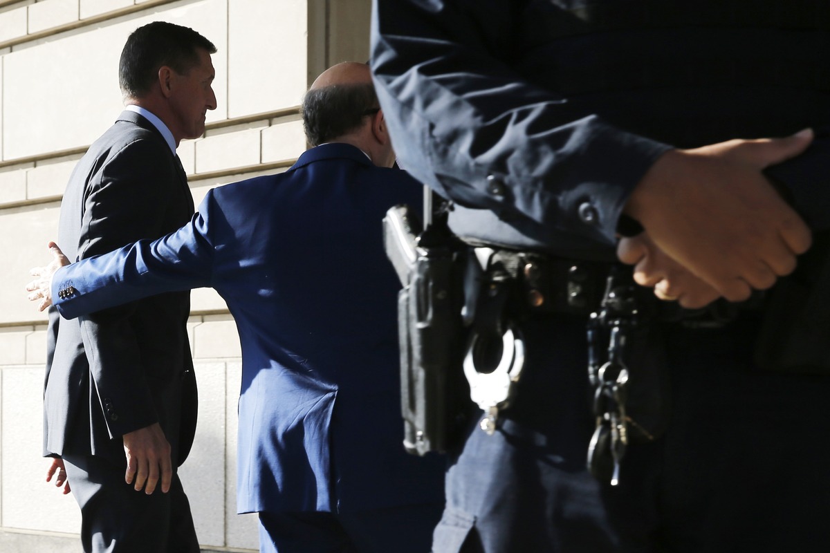 A small group of protesters yelled "Lock him up!" as Flynn left the courthouse on Friday, echoing the "Lock her up!" chant that Flynn himself led against Trump's Democratic rival, Hillary Clinton, in vitriolic appearances on the campaign trail.
