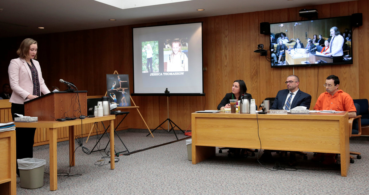 CHARLOTTE, Mich. (Reuters) - Jessica Thomashow was a 9-year-old gymnast who still liked playing with American Girl dolls when USA Gymnastics doctor Larry Nassar first molested her, she said in a Michigan courtroom on Wednesday.