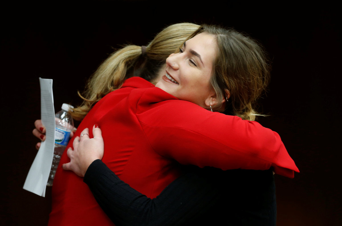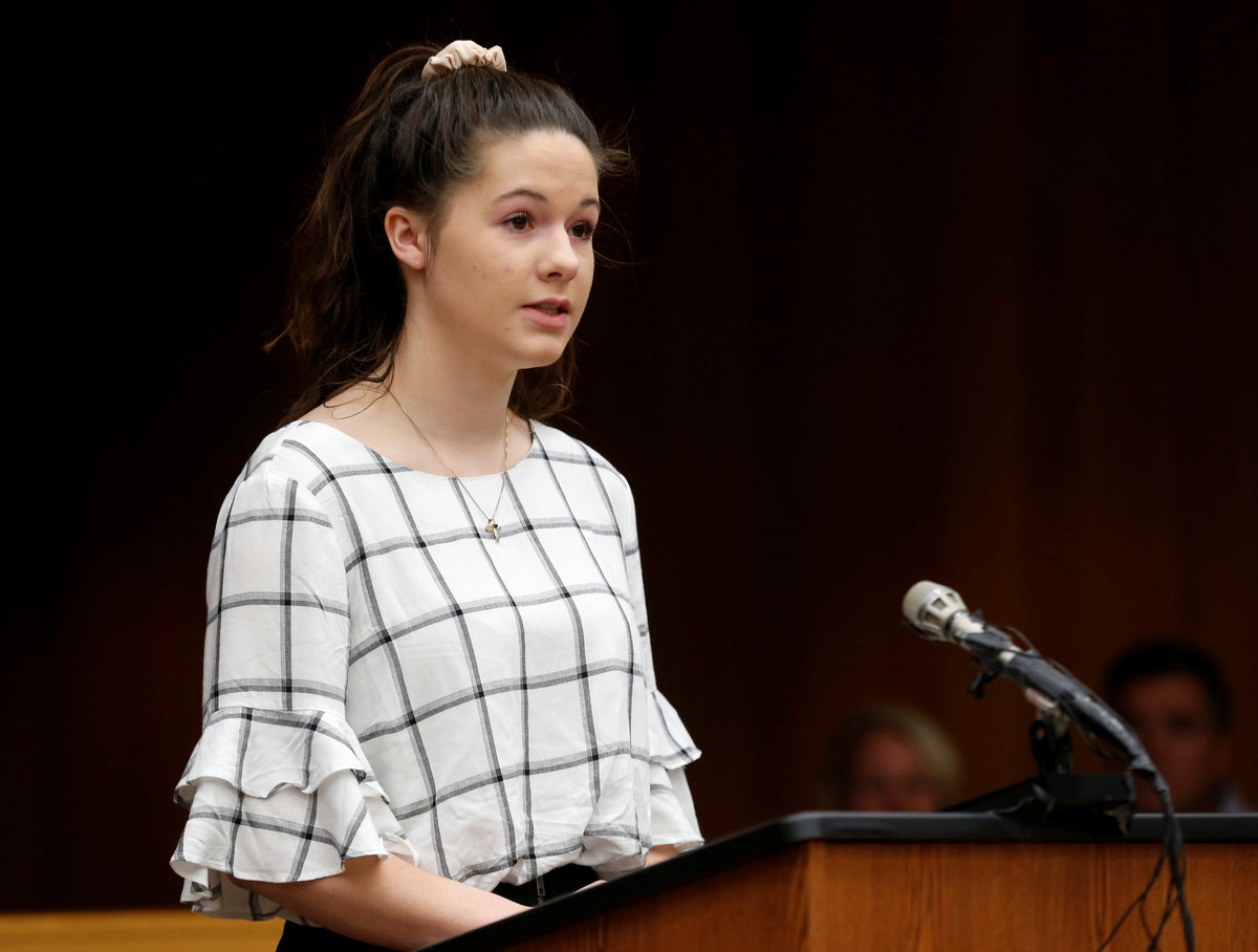 "I used to be excited to meet new people," said Erin Blayer, 17, a high school soccer player. "And now, quite frankly, I'm scared. You have destroyed the way I look at male role models in my life."