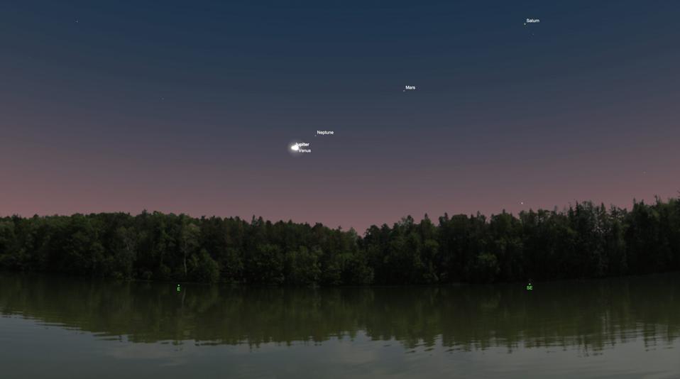 - Saturday, April 30: Jupiter will be to the left of Venus.