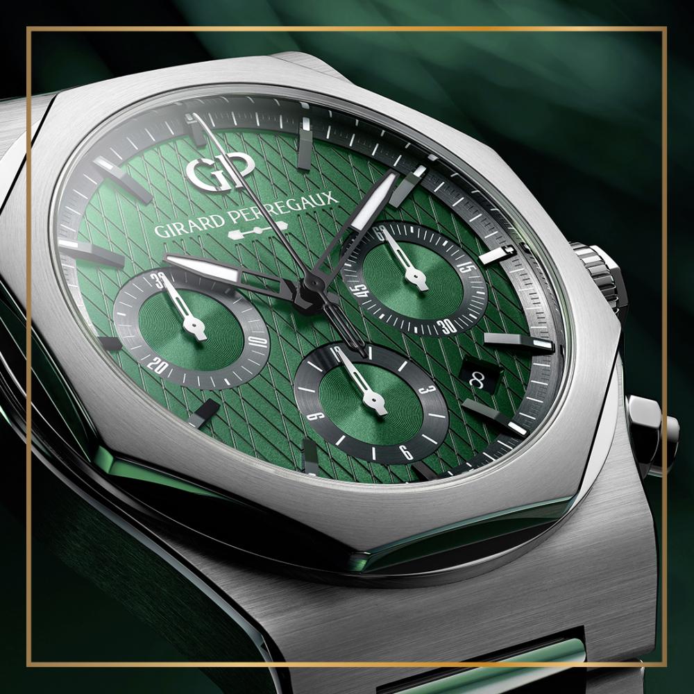 After a special edition of the Tourbillon with Three Flying Bridges, Girard-Perregaux and Aston Martin Lagonda have introduced a more sporty yet elegant timepiece. The Laureato Chronograph was chosen for this collaboration, which celebrates Aston Martin's heritage on the race track.