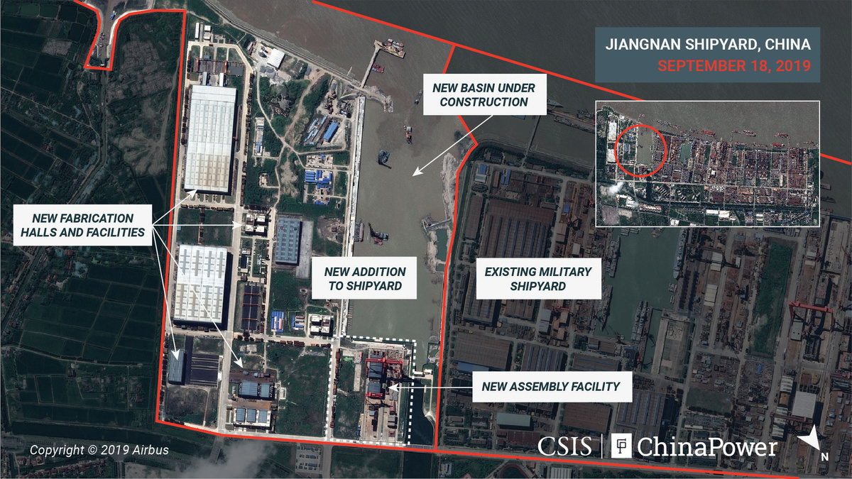 The images of the Jiangnan shipyard outside Shanghai were taken last month and provided to Reuters by the non-partisan Centre for Strategic and International Studies (CSIS), building on satellite photos it obtained in April and September last year.