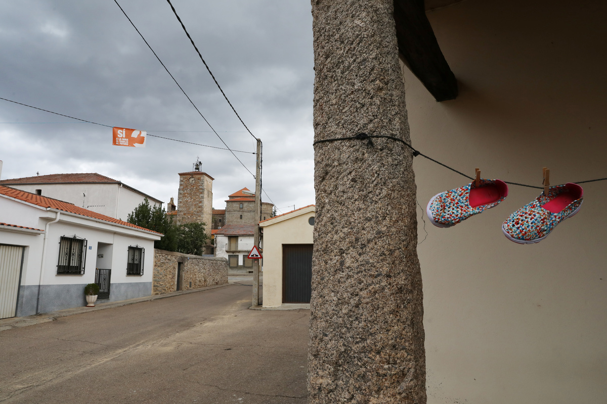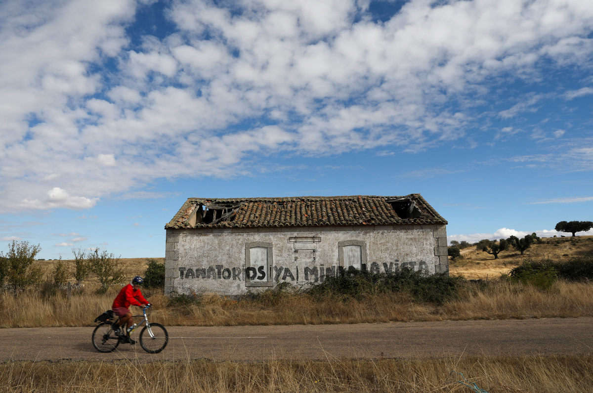 Graffiti is seen on a road sign at the entrance to the village of Retortillo, site of a planned open-cast uranium mine by Australian mining company Berkely Energia, near Salamanca, in Retortillo, Spain, October 17, 2018. REUTERS/Susana VeraA cyclist passes by a building with graffiti reading "Funeral Homes Now, Mine on the Way" at the entrance to the village of Retortillo, site of a planned open-cast uranium mine by Australian mining company Berkely Energia, near Salamanca, in Retortillo, Spain, October 17, 2018. REUTERS/Susana VeraA sign in favor of a planned open-cast uranium mine by Australian mining company Berkely Energia which reads "Yes to the Mine, to Jobs, to the Future" is seen in a field in the village of Retortillo, near Salamanca, Spain, October 17, 2018. REUTERS/Susana VeraAn abandoned building with graffiti referring radioactivity is seen at the entrance to the village of Retortillo, site of a planned open-cast uranium mine by Australian mining company Berkely Energia, near Salamanca, in Retortillo, Spain, October 17, 2018. REUTERS/Susana VeraCrosses left by anti-mine supporters that used to read "No to the mine, yes to life" are seen near the site of a planned open-cast uranium mine by Australian mining company Berkeley Energia in the village of Retortillo, near Salamanca, Spain, October 17, 2018. REUTERS/Susana VeraRaquel Romo, 44, a member of the "Stop Uranium" group, poses near a sign that reads "Stop Uranium. No to the mine, yes to life" outside her parent's house near the site of a planned open-cast uranium mine by Australian mining company Berkeley Energia in the village of Retortillo, near Salamanca, Spain, October 17, 2018. REUTERS/Susana VeraA dog wanders in the empty streets of Retortillo, site of a planned open-cast uranium mine by Australian mining company Berkeley Energia, near Salamanca, in Retortillo, Spain, October 17, 2018. REUTERS/Susana VeraA man takes a walk in the village of Retortillo, site of a planned open-cast uranium mine by Australian mining company Berkeley Energia, near Salamanca, in Retortillo, Spain, October 17, 2018. REUTERS/Susana VeraThe offices of Australian mining company Berkeley Energia are seen near a planned open-cast uranium mine in Retortillo, near Salamanca, Spain, October 17, 2018. REUTERS/Susana VeraGraffiti that reads "No to the mine, go away" is seen next to a "No trespassing" sign near a site of a planned open-cast uranium mine by Australian mining company Berkeley Energia, near Salamanca, in Retortillo, Spain, October 17, 2018. REUTERS/Susana VeraAn empty playground is seen in the village of Retortillo, site of a planned open-cast uranium mine by Australian mining company Berkeley Energia, near Salamanca, in Retortillo, Spain, October 17, 2018. REUTERS/Susana VeraAn area that has been cleared of trees is seen at the site of a planned open-cast uranium mine by Australian mining company Berkeley Energia in the village of Retortillo, near Salamanca, Spain, October 17, 2018. REUTERS/Susana Vera