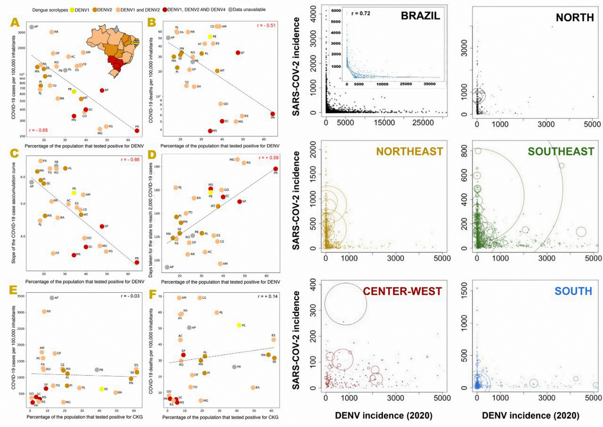 In states such as Paraná, Santa Catarina, Rio Grande do Sul, Mato Grosso do Sul and Minas Gerais, with a high incidence of dengue last year and early this year, COVID-19 took much longer to reach a level of high community transmission compared to states such as Amapá, Maranhão and Pará that had fewer dengue cases.