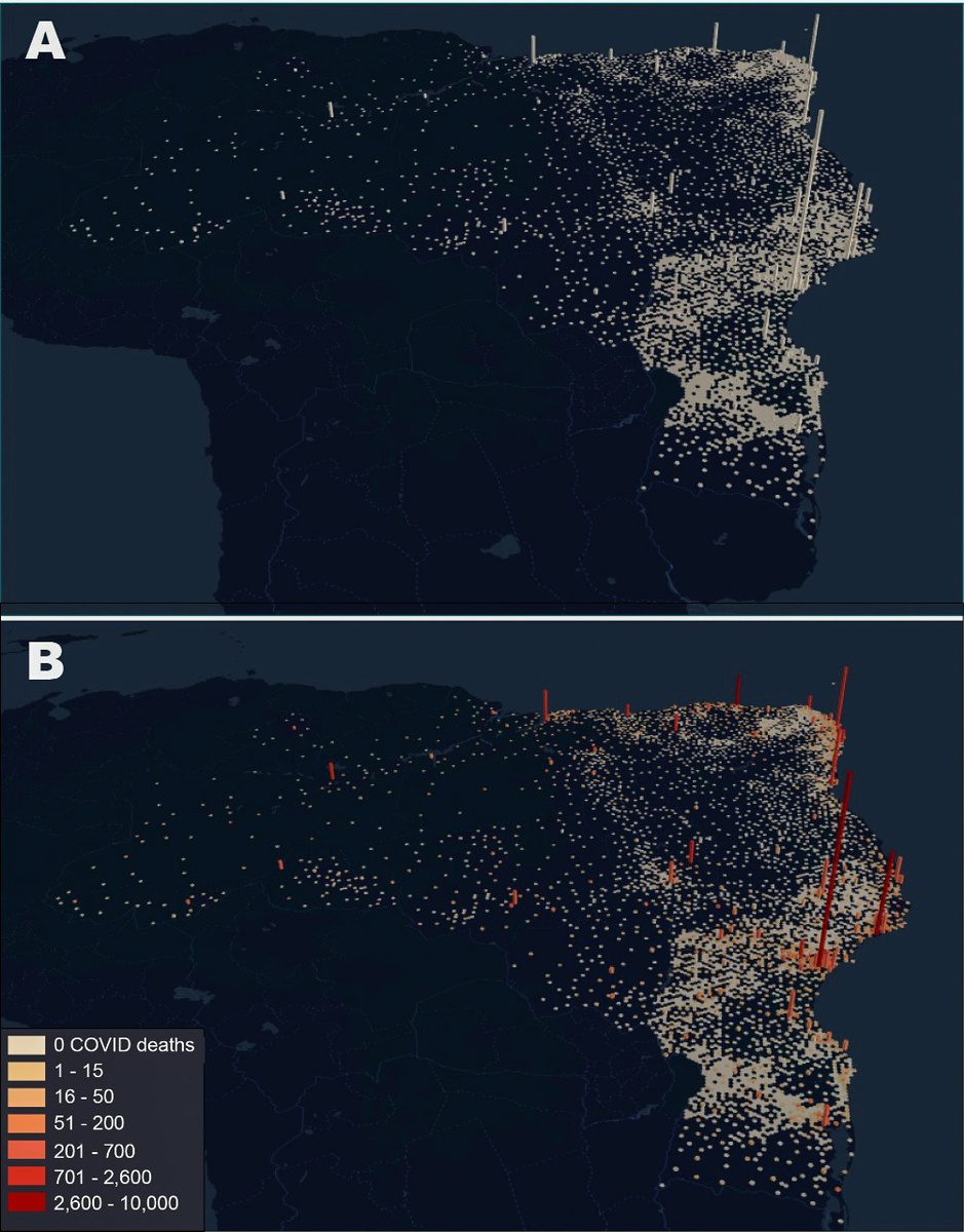 The comparison between the geographic distribution of COVID-19 cases and their incidence until June 30, 2020, and that of dengue fever cases and their incidence in Brazil until May 31, 2020, and for dengue fever cases and incidence summing all data from 2019 and until May 31, 2020, is seen in this undated handout image. UFPB/Handout via REUTERS MANDATORY CREDIT NO RESALES. NO ARCHIVES THIS IMAGE HAS BEEN SUPPLIED BY A THIRD PARTY.