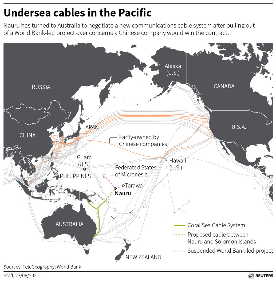 Nauru has been negotiating plans to tap into the Australian-backed Coral Sea Cable system, via Solomon Islands, sources told Reuters in June.