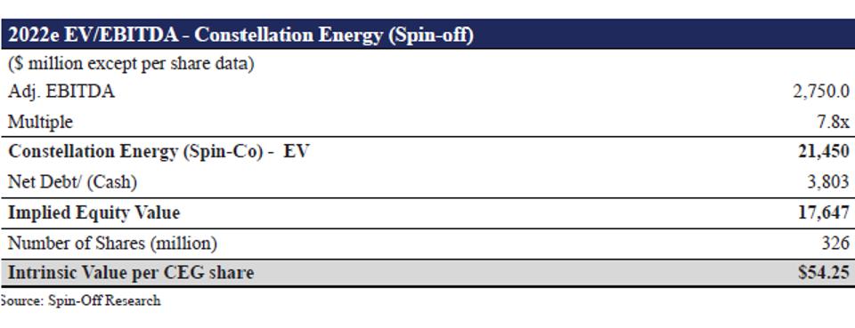 EV/EBITDA Valuation: Our fair value estimate for CEG (Spin-Off) stands at $54.25 (Previously: $48.75) based on 2022e EV/EBITDA multiple of 7.8x (at a slight premium to its peer median multiple of 7.7x). We have assumed a Net debt of $3.8 billion, which includes a contribution of $1.75billion in cash by Exelon (stub). Post spin-off, Constellation is one of the top nuclear operators with a high-class nuclear fleet, and plans to pay out $180 million in dividends starting in 2022 with a 10% growth in dividend payout in the near future.