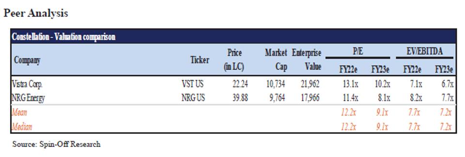 Constellation (Spin-Off) will be a supplier of power to the nation’s largest producer of carbon-free energy and the leading competitive retail energy products and services for homes and businesses across the United States. For FY22, the company expects adjusted EBITDA from $2.35 billion to $2.75 billion.