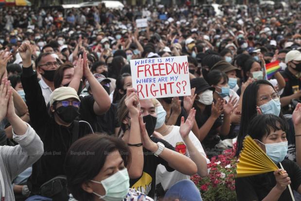 Student-led protests have spread nationwide since July 18. On Aug 16, over 10,000 protesters joined the demonstration led by the Free People group to demand the dissolution of parliament, seek changes to the constitution and end government harassment of dissenters.