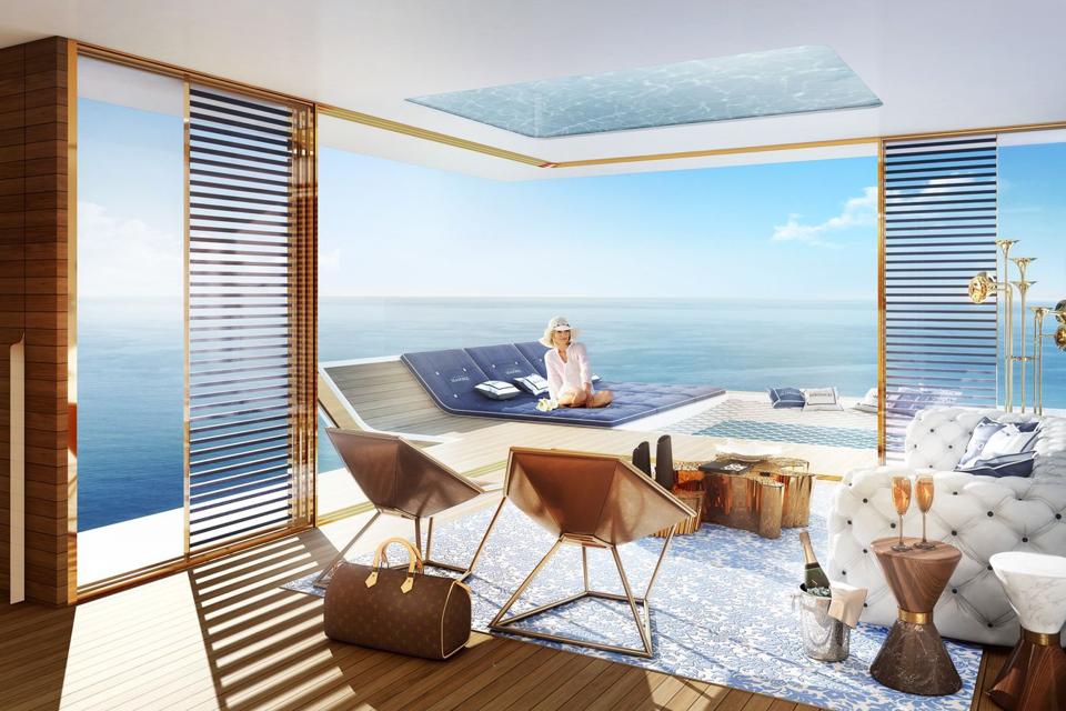 The innovative marine-style retreats of the Floating Seahorse are akin to elaborate stationary house/boat hybrids. Lacking propulsion and navigation systems, they are moved into place by construction cranes and then anchored to the ocean floor.
