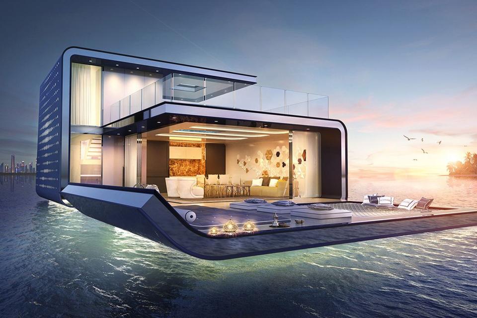 The three-story contemporary homes have an underwater level, a sea level and a deck level. Marine-grade concrete is used for the surface below the water. The upper levels, framed in light-weight aluminum, have the glossy finish of a luxury yacht.