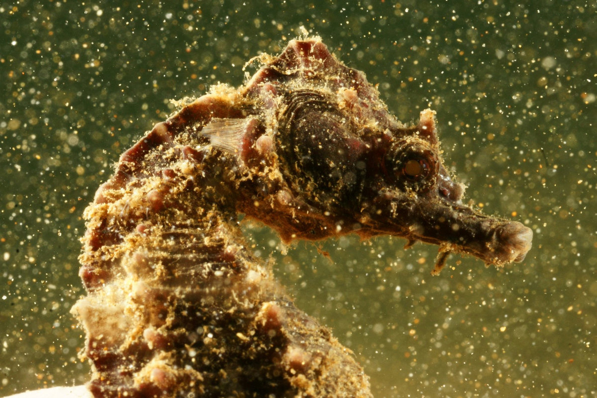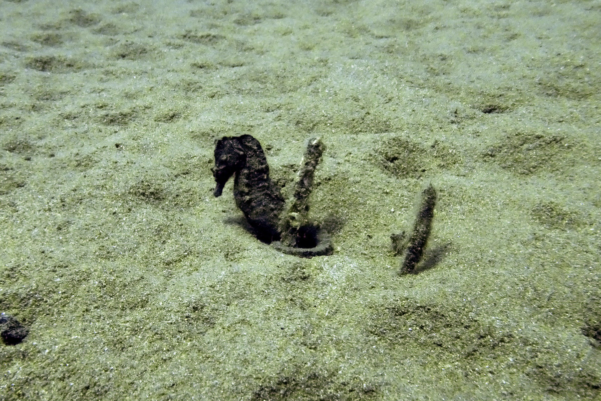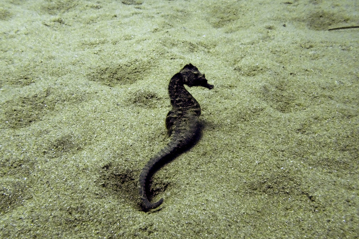 Swimming at a depth of about 8-9 meters he recalls seeing a seahorse, followed by another and another.